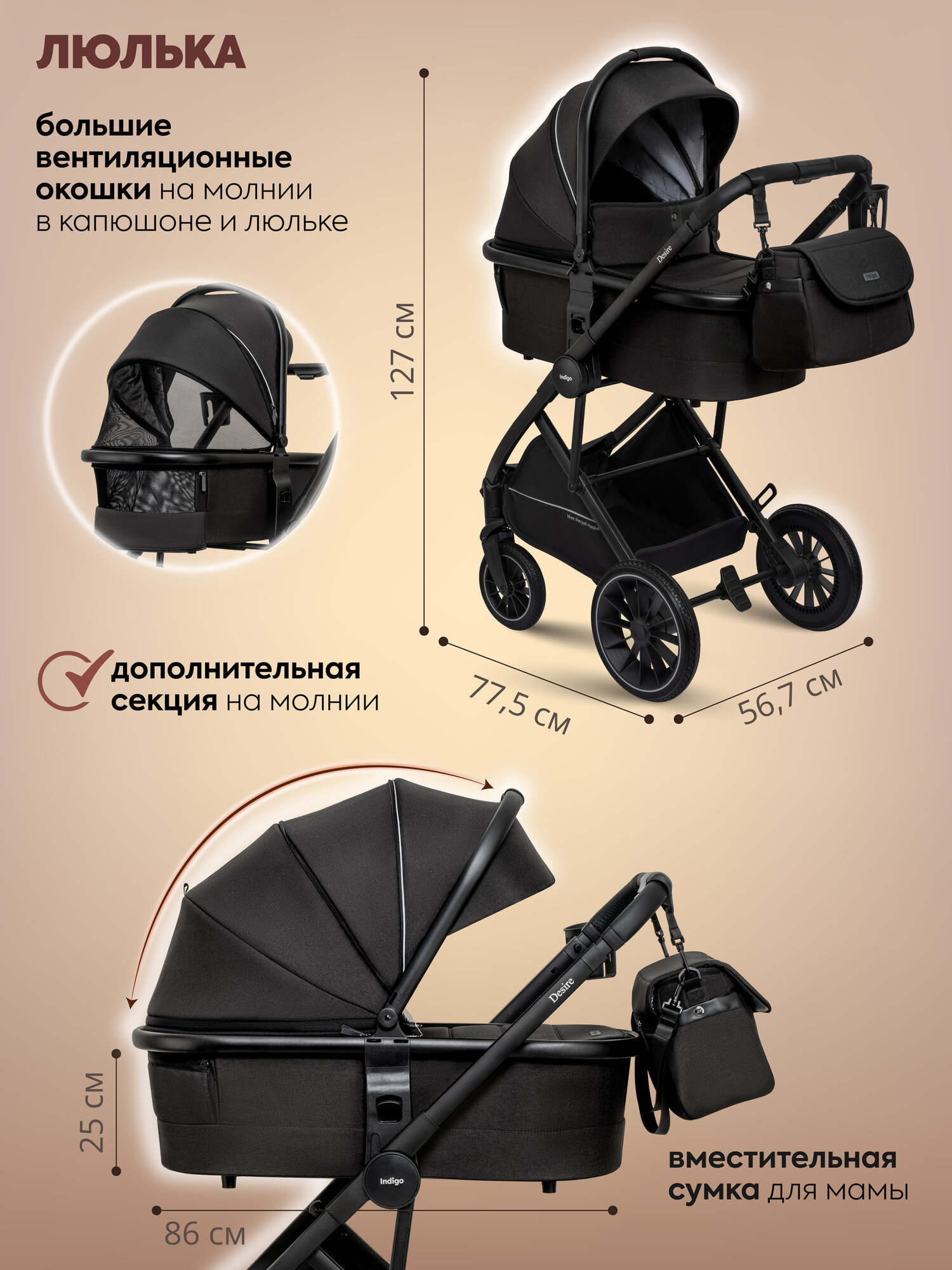 10 цен на Коляска 2в1 INDIGO DESIRE универсальная, всесезонная, черный