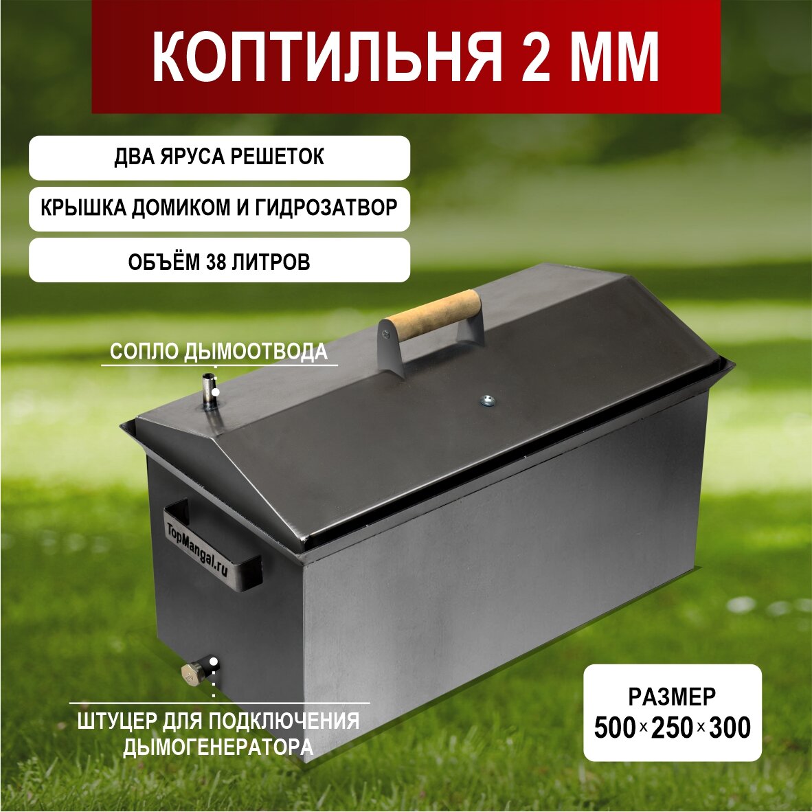 Коптильня горячего и холодного копчения TOPMANGAL с гидрозатвором 2 мм (500*250*300) некрашенная информация: