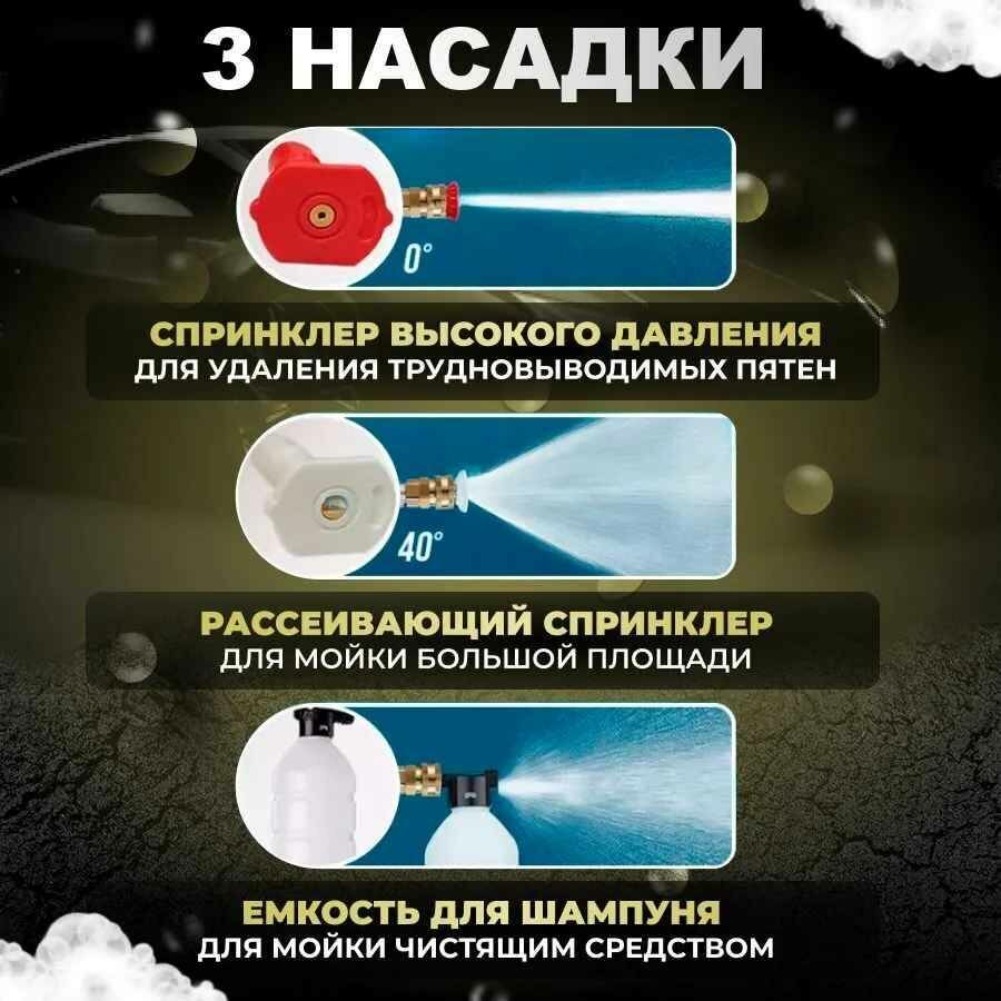 | Подробная комплектация | Пистолет высокого давления 1 шт, Аккумулятор 2 шт, Зарядное устройство 1 шт, Быстросъемный Шланг 1 шт, Спринклер 0° 1 шт, Спринклер 40° 1 шт, Удлинитель 1 шт, Фильтр 1 шт, Пенообразователь 1 шт, Инструкция по эксплуатации 1 шт |