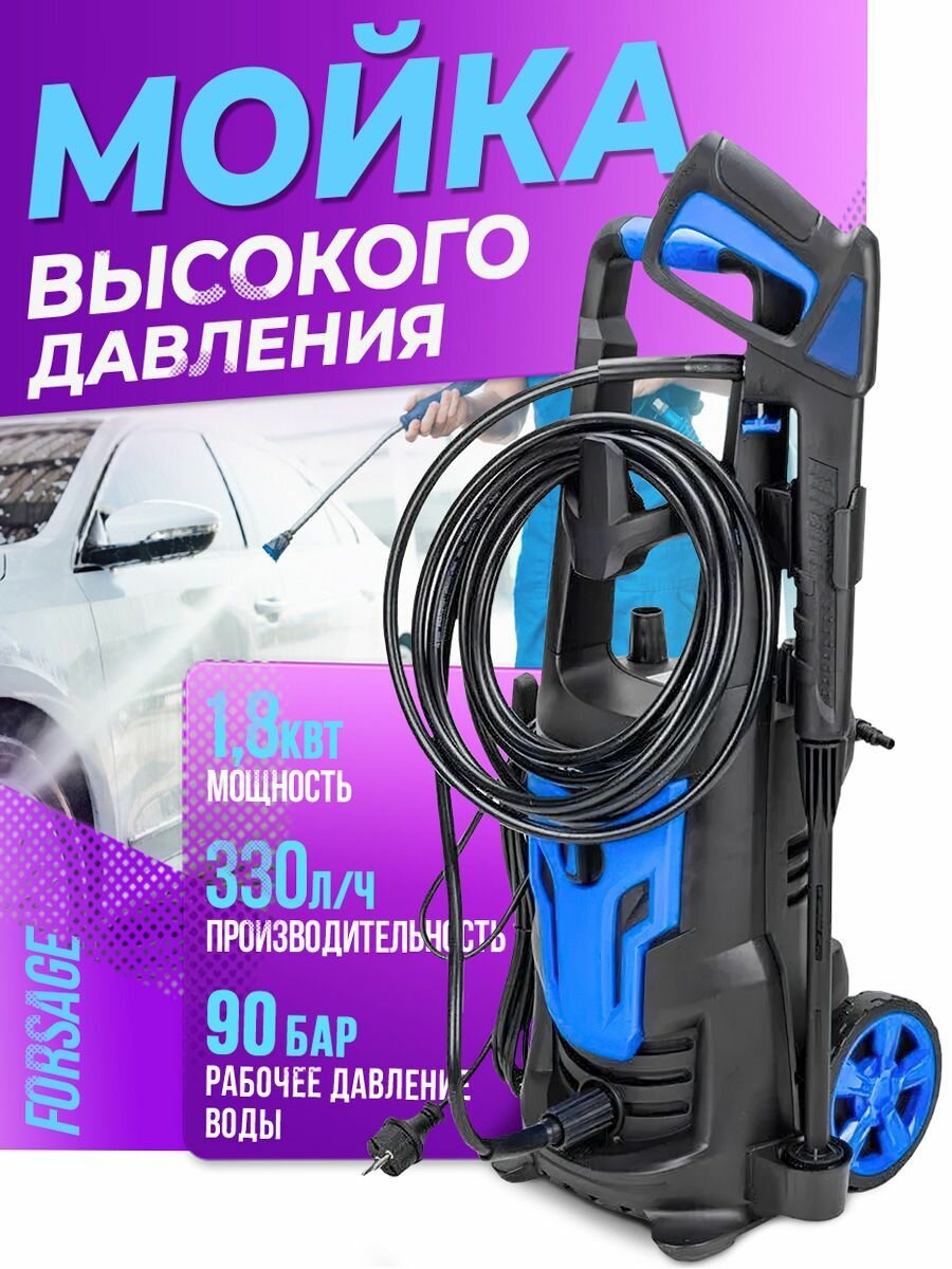 10 цен на Мойка высокого давления электрическая (230-240В, 1800Вт, номин.расход 5.5л/мин.) Forsage F-HRF13P