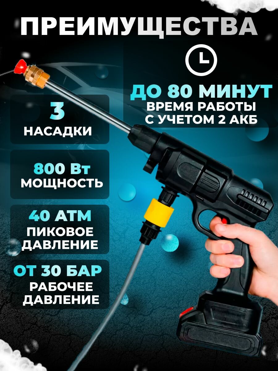 Аккумуляторная автомойка с двумя аккумуляторами в комплекте