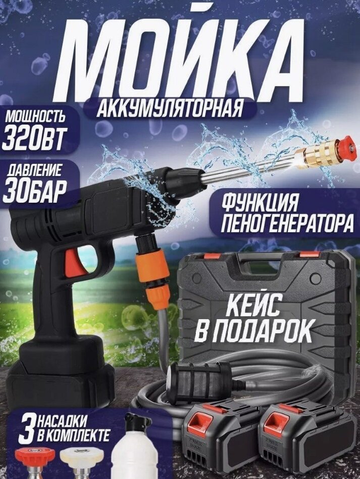 Автомойка аккумуляторная высокого давления, беспроводная автомойка, портативный пистолет для мойки автомобилей, мойка с 2 аккумуляторами информация: