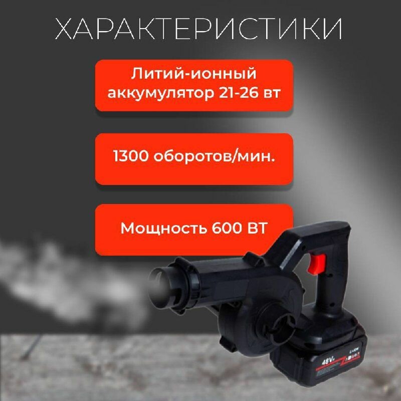 Воздуходувка портативная "Турбовентилятор", черная, Li-ion, 52м/с, 2 аккумулятора