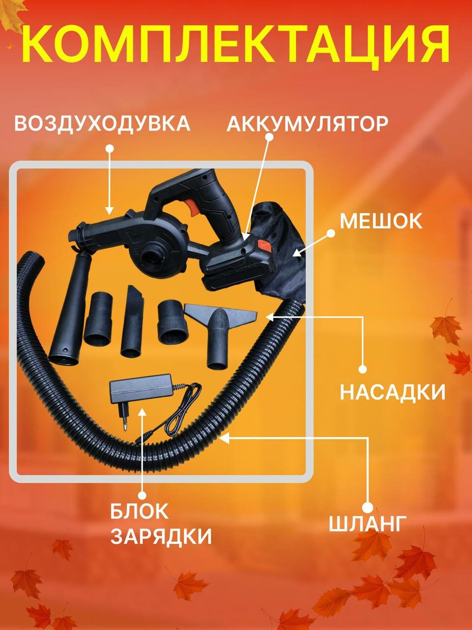 Воздуходувка садовая аккумуляторная с насадками информация: