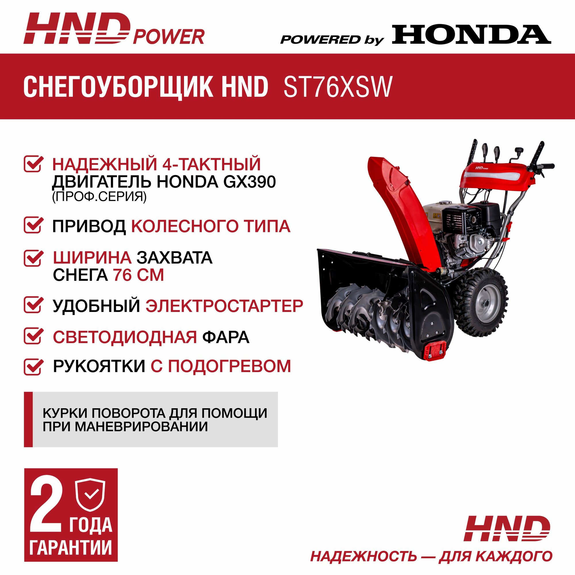 Снегоуборщик HND ST76XSW с двигателем Honda информация:
