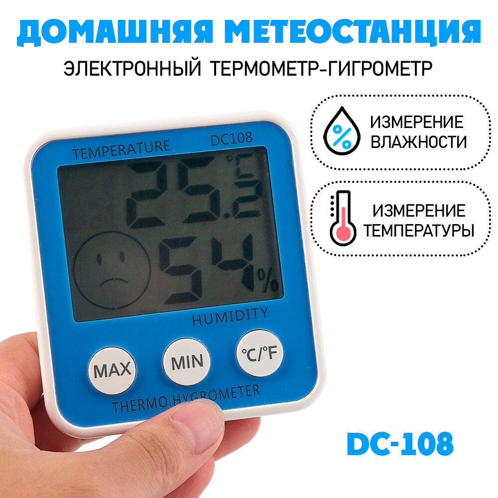 Термометр-гигрометр электронный, DC 108, ЖК дисплей без выносного датчика, цвет - синий информация: