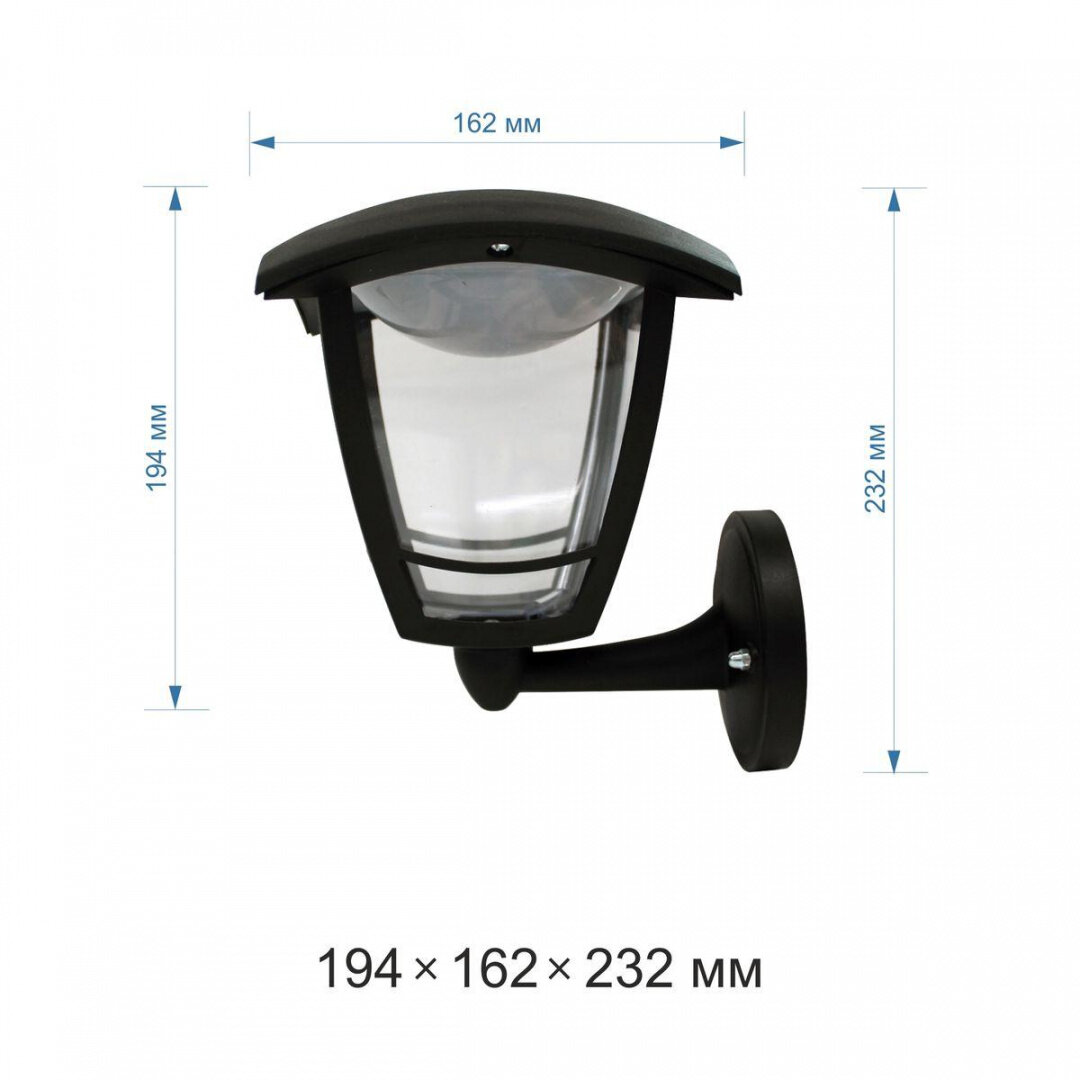 Светодиодный садово-парковый светильник, настенный вверх, Дели, 8Вт, 720Лм, 6500К, черный