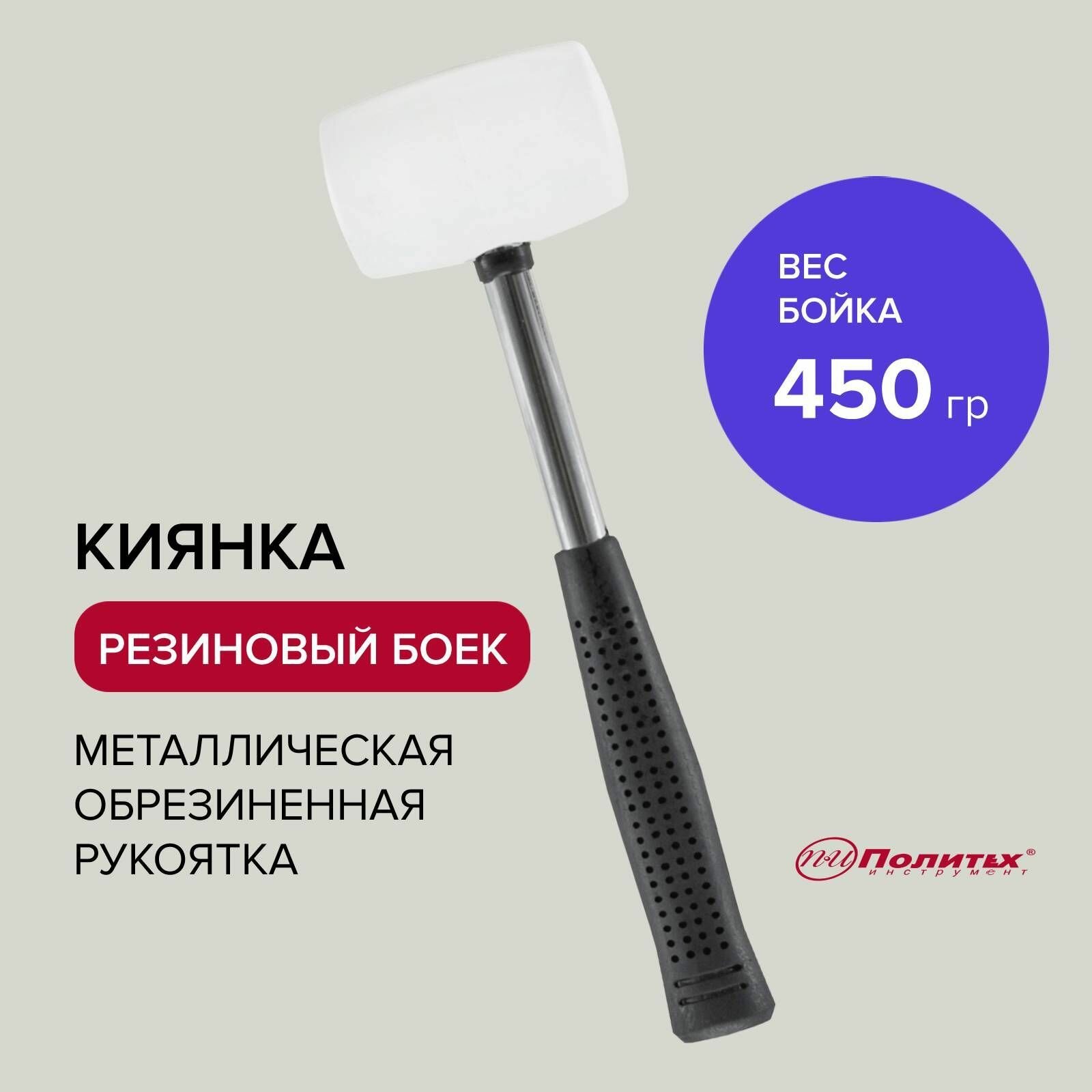 Киянка резиновая белая с металлической обрезиненной рукояткой 450 г, Политех Инструмент информация: