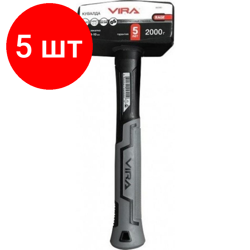 Комплект 5 штук, Кувалда 2000 г фибергласовая ручка VIRA RAGE 902000 информация: