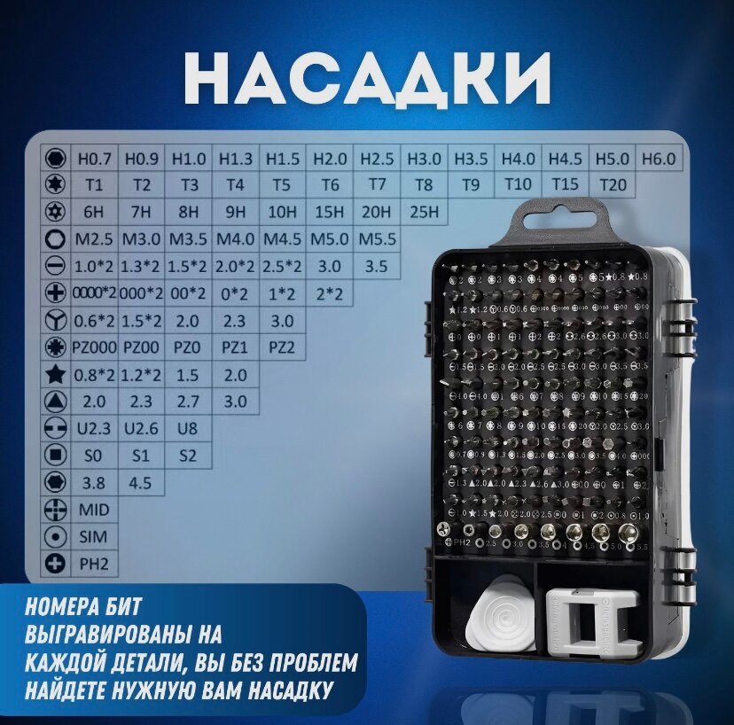 Набор Отвёрток 117 в 1 / Набор Инструментов для ремонта телефонов / Отвертки для ремонта смартфонов и компьютеров информация: