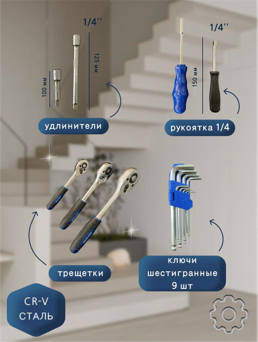10 цен на Набор инструментов для автомобиля и дома 121 предмет