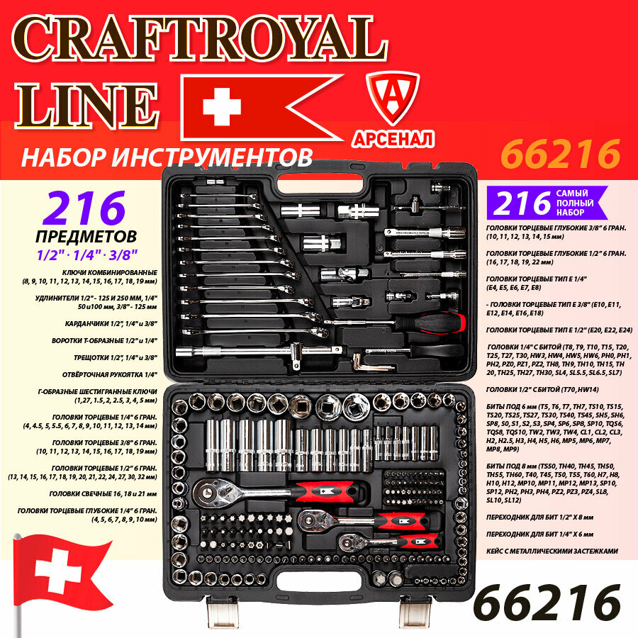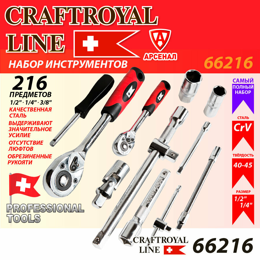 Набор инструмента CraftRoyal, 216 предметов №66216 информация: