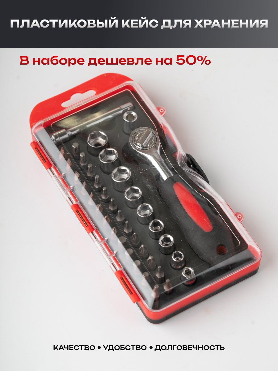 10 цен на Набор торцевых головок и насадок с трещоткой 1/4" (38шт.)