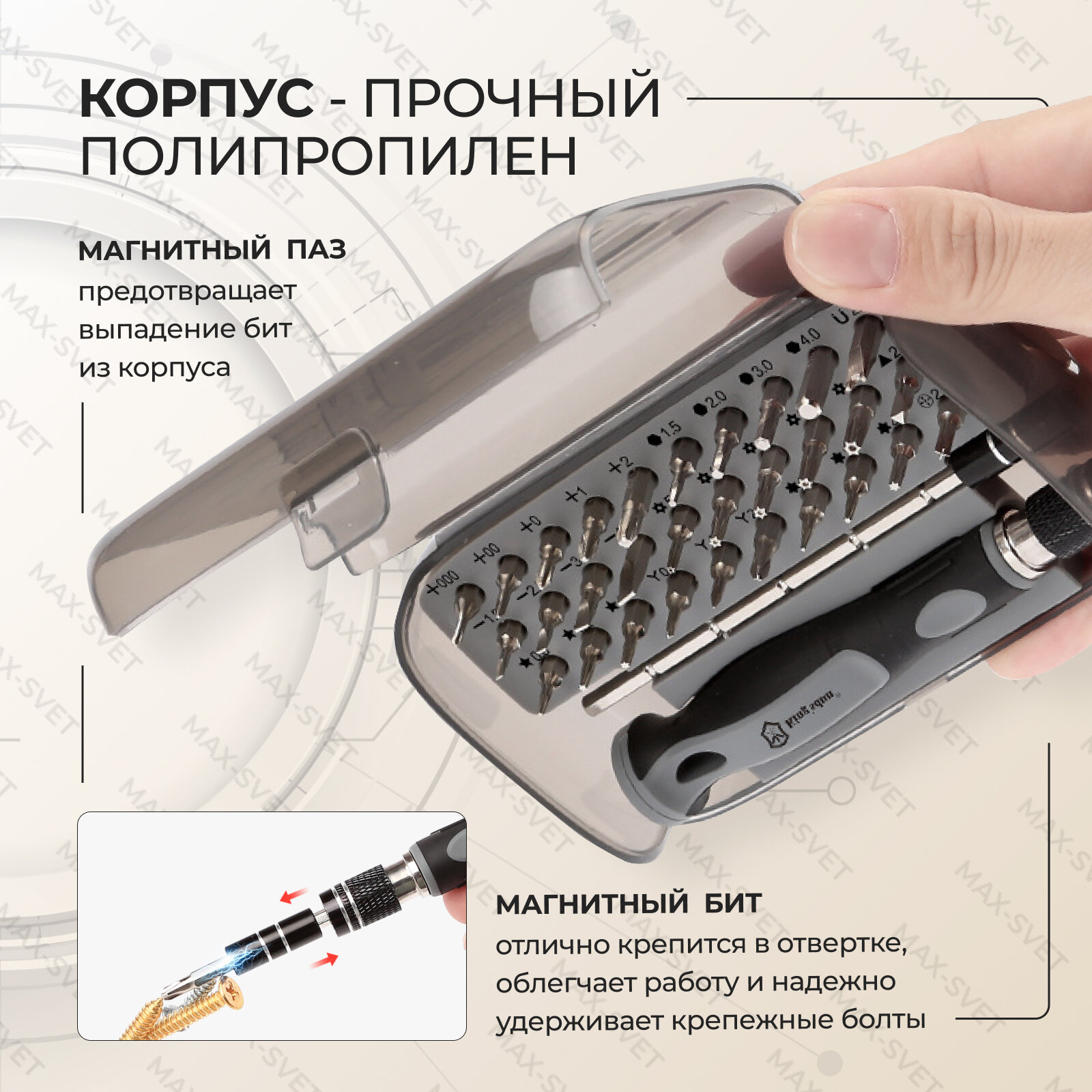 Набор инструментов S-MAX, с прорезиненной отверткой и комплектом из 32 бит из хромованадиевой стали с магнитным креплением для ремонтных работ информация: