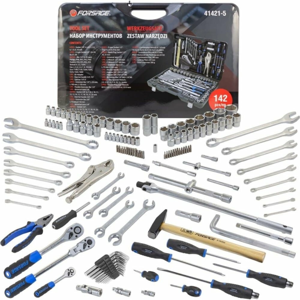 FORSAGE F-41421-5 набор инструментов 142 пр: 1 / 4 inch х 3 / 8 inch х 1 / 4 inch, 2 inch, 6 гр, 4-32 мм 25 959 ₽