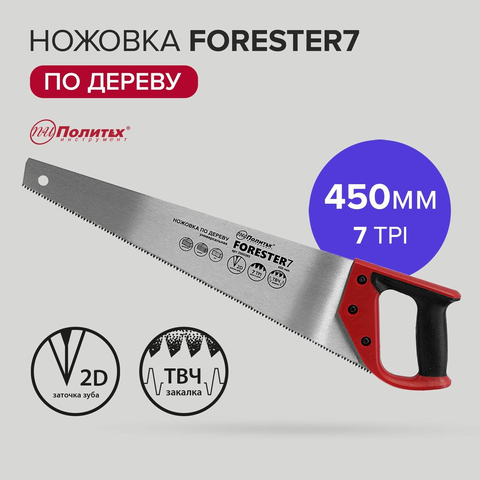 Ножовка по дереву 450 мм 2D Политех Инструмент информация: