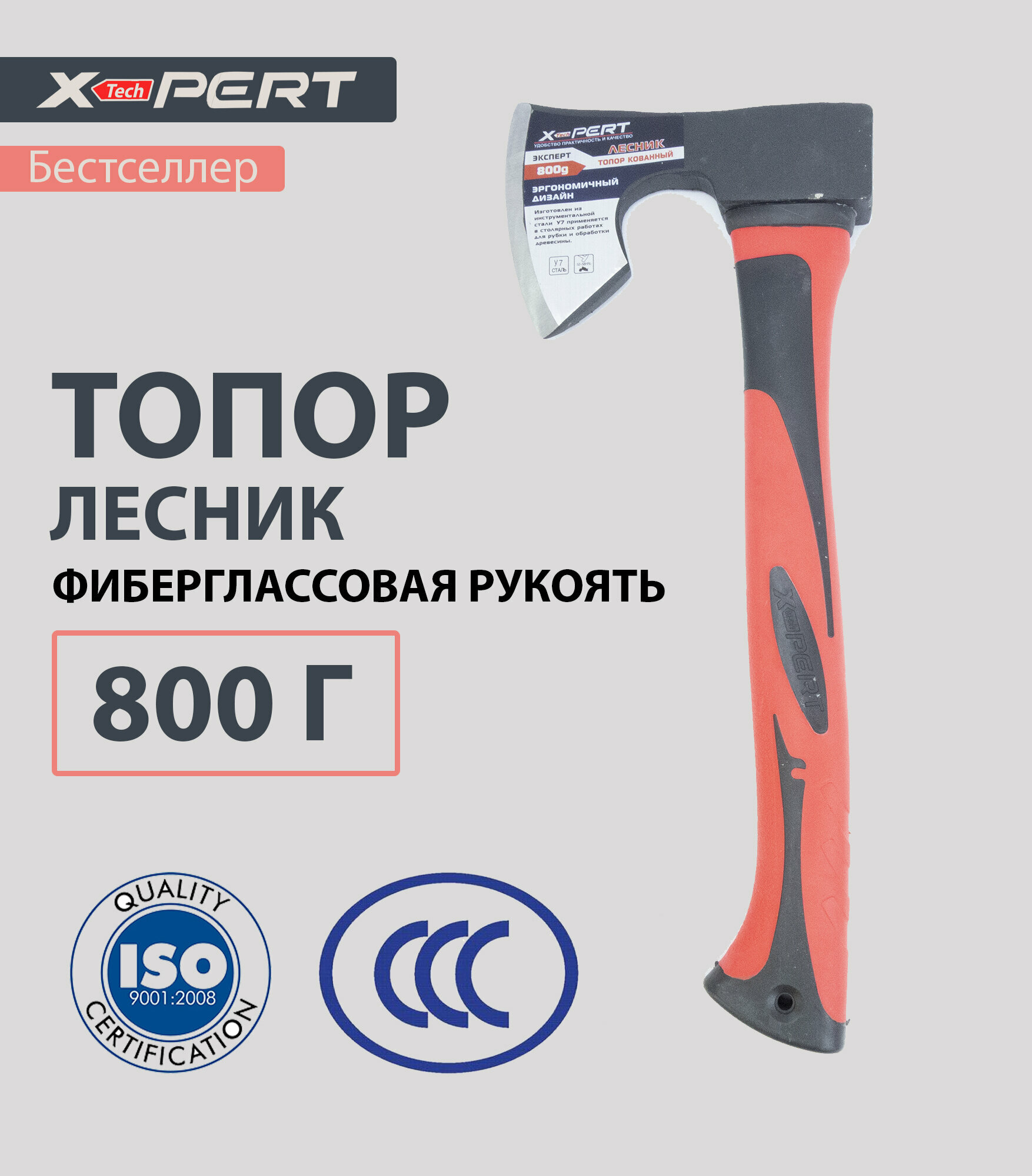 Топор кованый X-PERT "Лесник" 800 гр. с фиберглассовым обрезиненным топорищем (красный) информация: