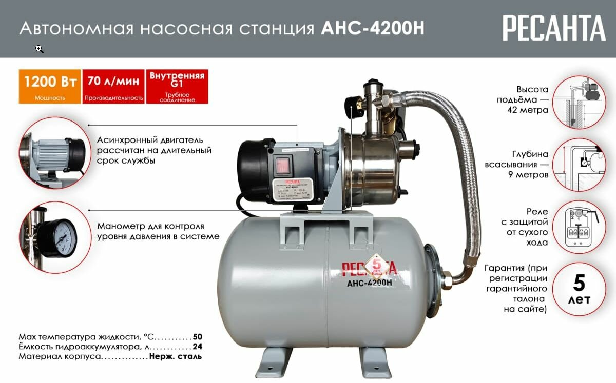 Насосная станция Ресанта АНС-4200Н информация: