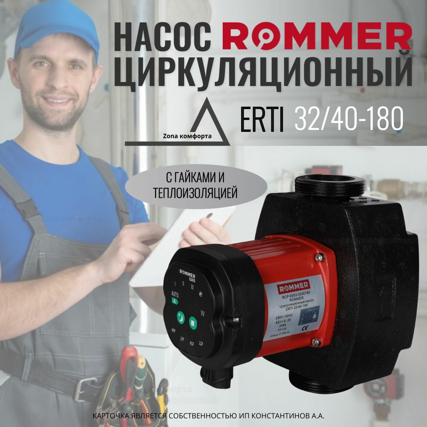 Отзывы на Насос ROMMER ERTI циркуляционный 32/40-180 с гайками и теплоизоляцией RCP-0003-3240180