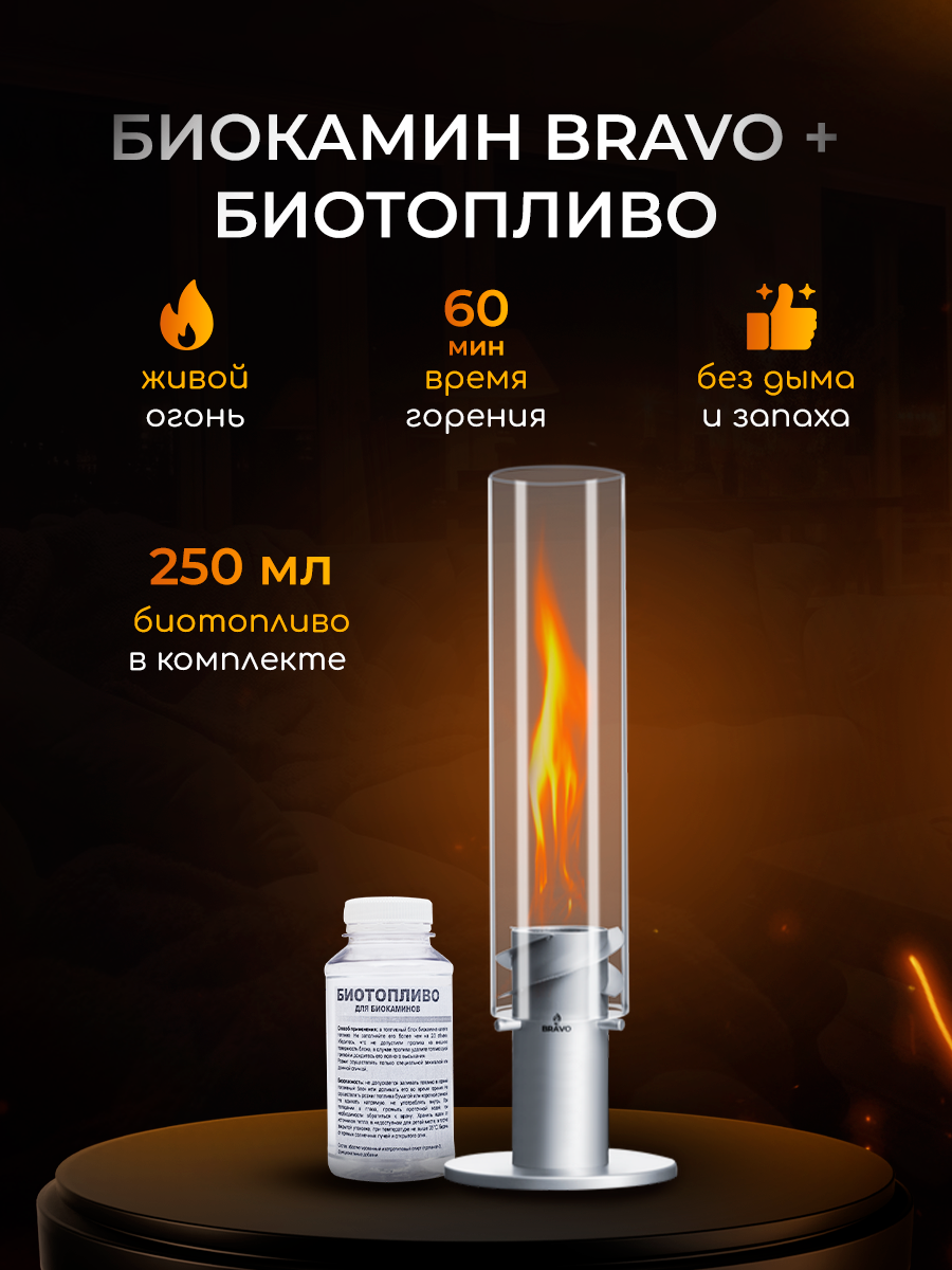 Биокамин настольный для дома Bravo + Биотопливо 250 мл информация: