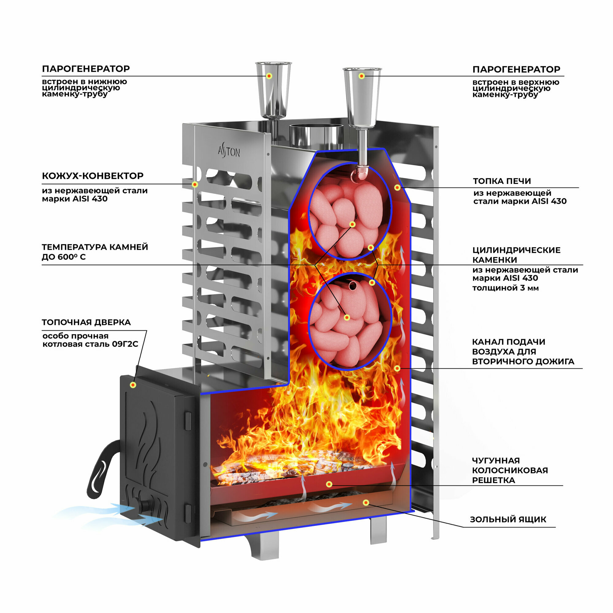 Печь для бани ASTON 20 "аква" диаметр дымохода: 115 мм, закрытая каменка 57 310 ₽