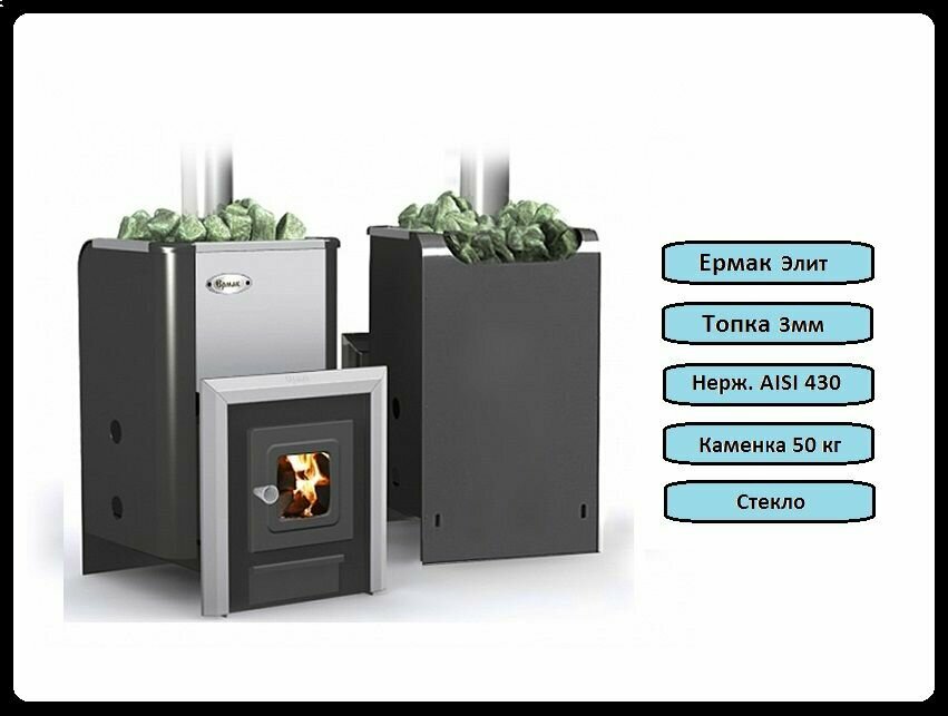 Печь для бани из нержавейки Ермак Элит 12 С, с баком для воды 35л информация: