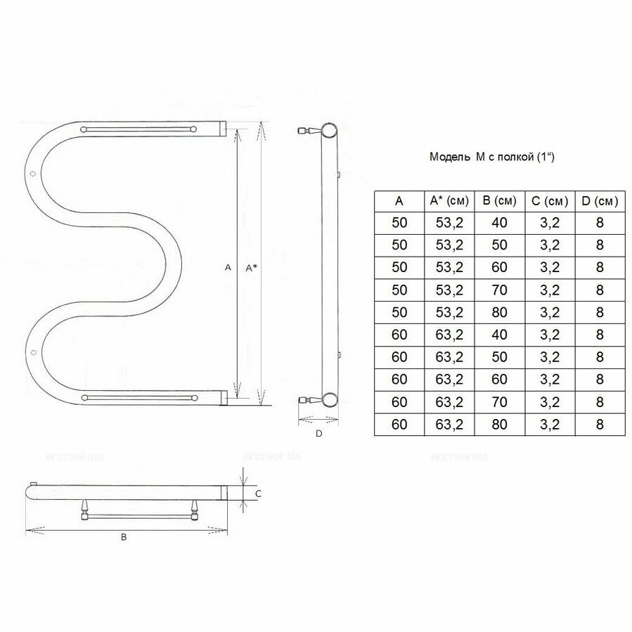 Отзывы на Полотенцесушитель водяной Двин (Dveen) M 60х60 см, c полкой, 1" К0 полированный хром