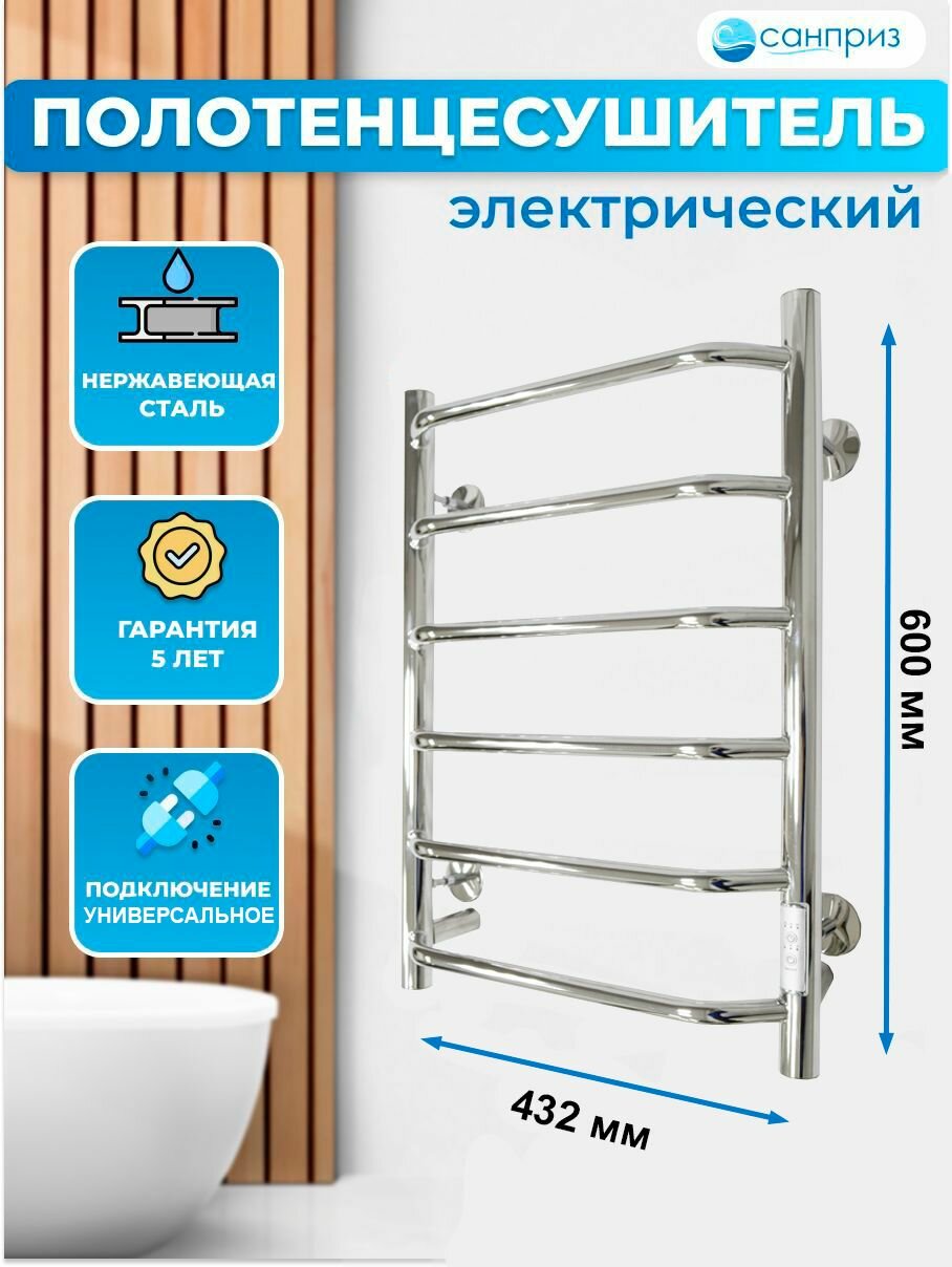Отзывы на Полотенцесушитель электрический Виктория П6 400*600 хром подключение универсальное лесенка санприз