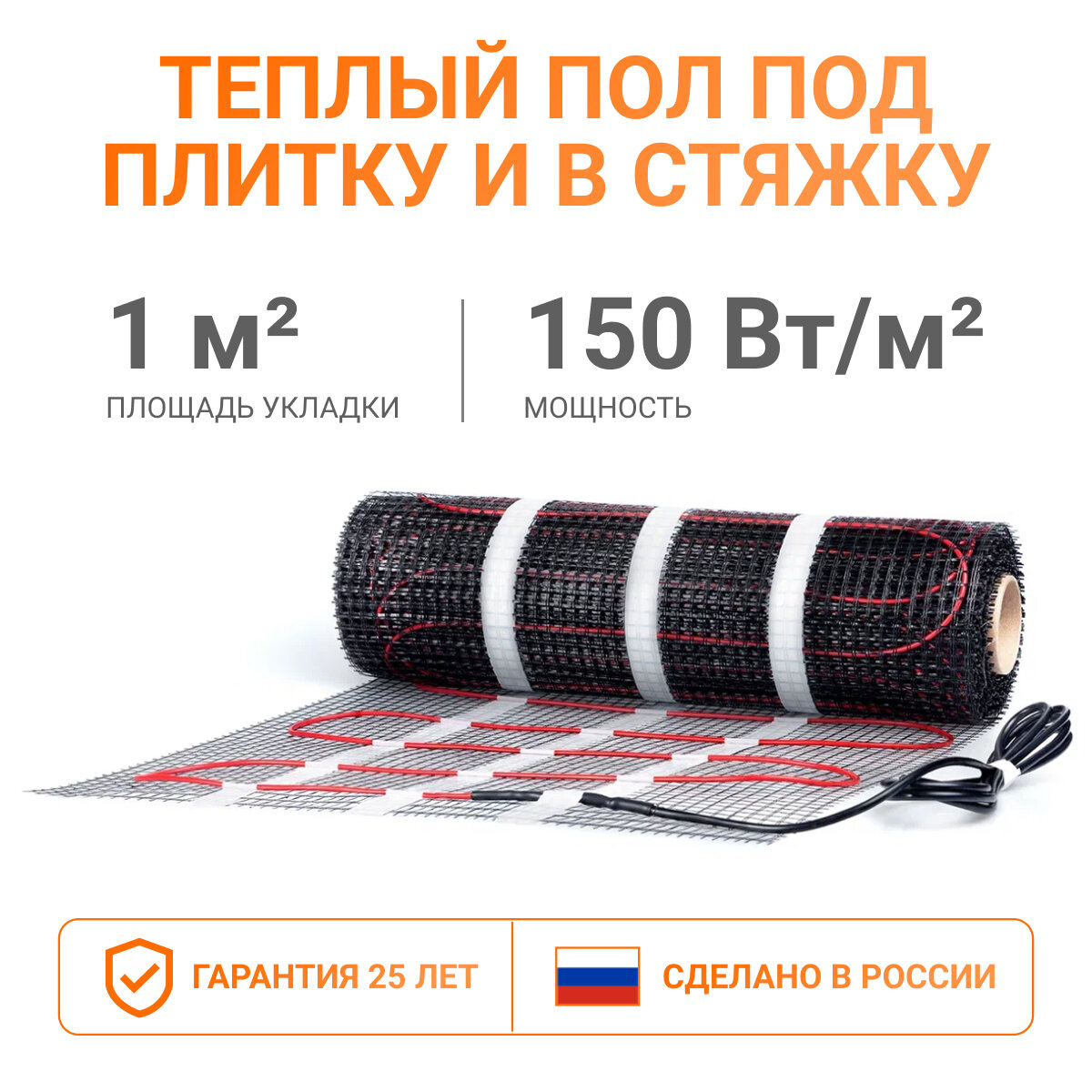 Электрический теплый пол 1 м2 Тепло и Точка, 150 Вт/м2 двужильный экранированный нагревательный мат под плитку информация: