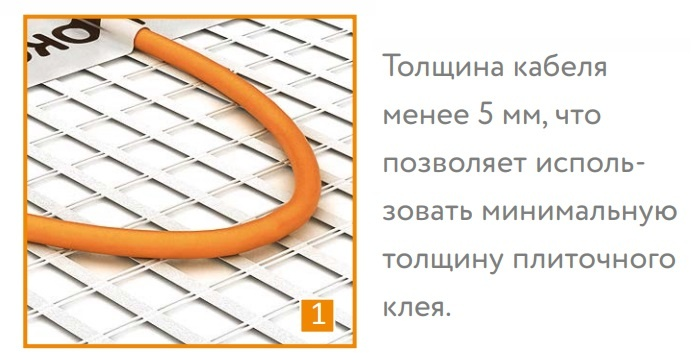 Теплый пол электрический под плитку Ридан TF-150 0,5 м2 нагревательный мат тонкий на самоклеящейся сетке