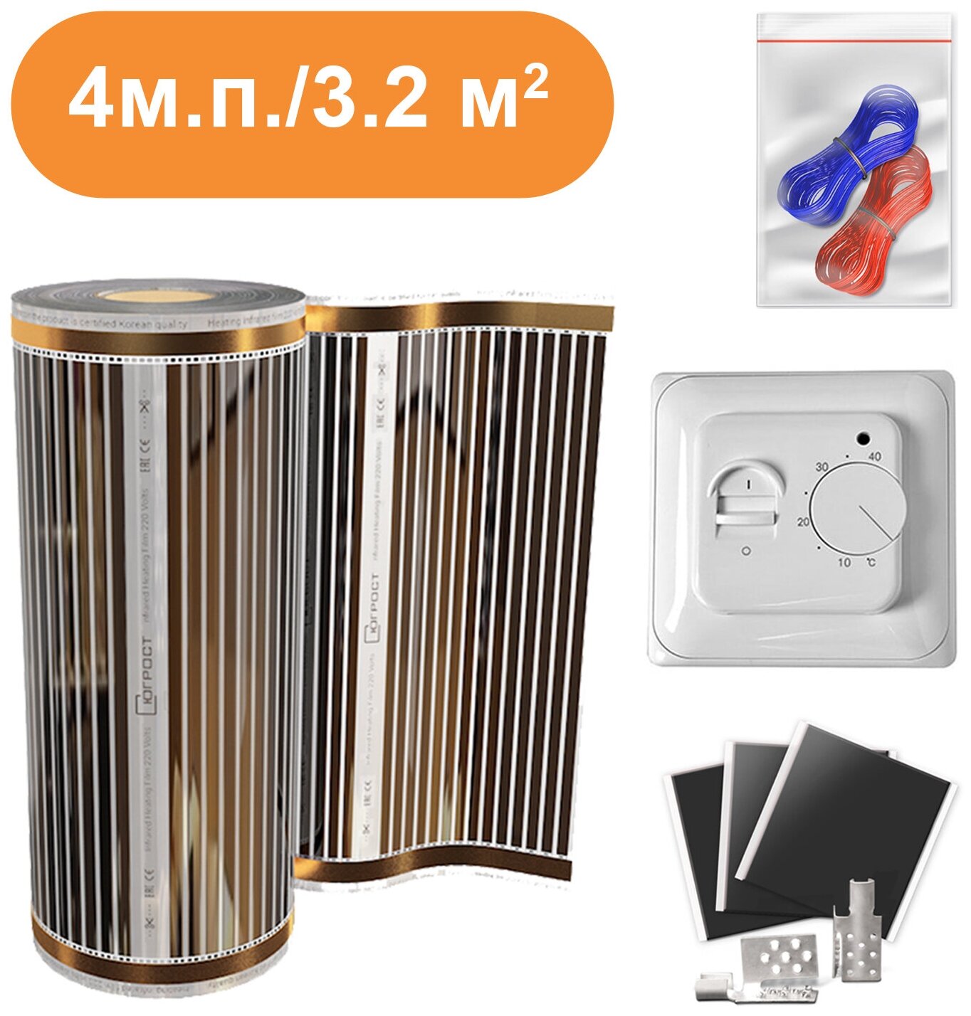 10 цен на Инфракрасный теплый пол под ламинат с терморегулятором, 80 см 4м.п.,комплект.