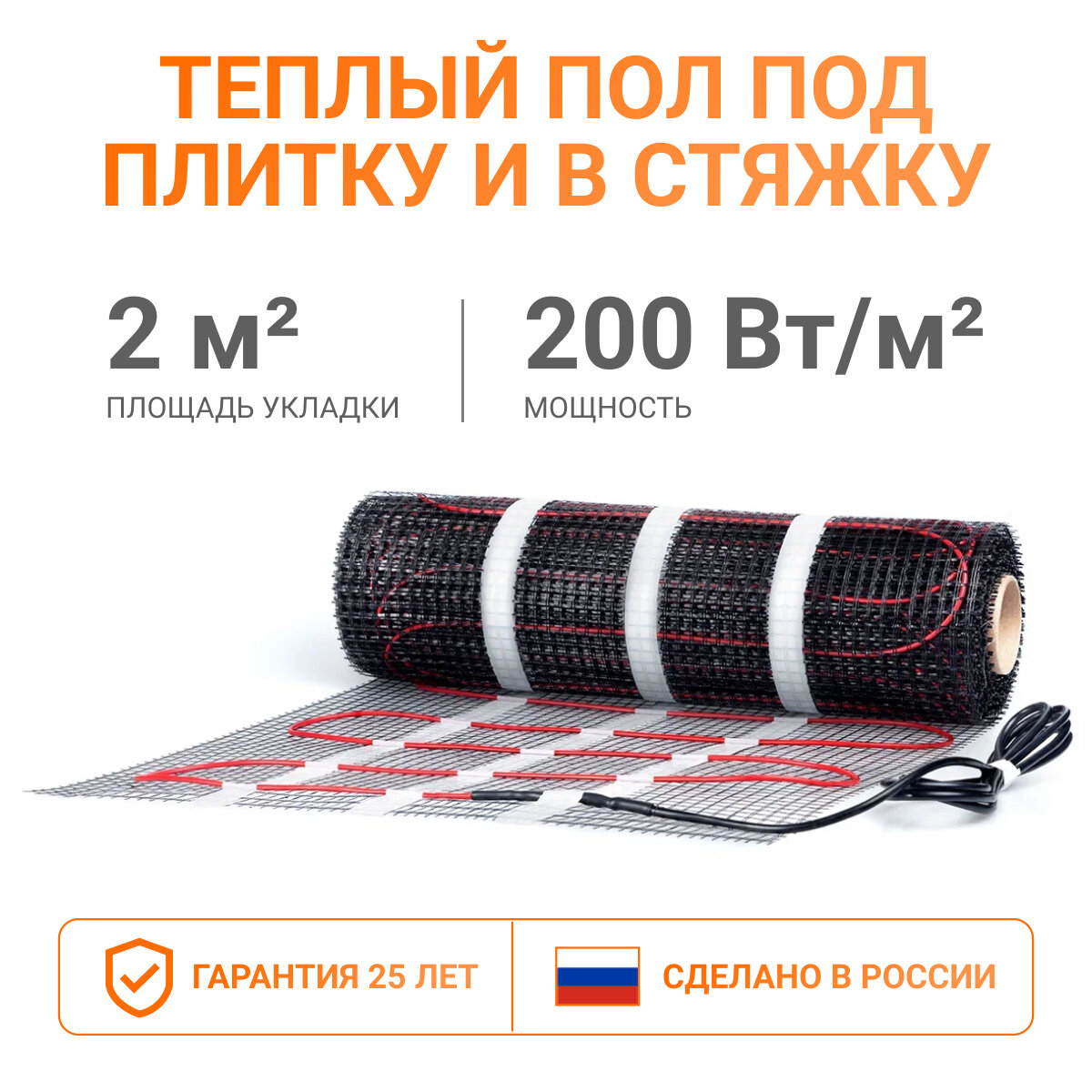 Отзывы на Электрический теплый пол 2 м2 Тепло и Точка, 200 Вт/м2 двужильный экранированный нагревательный мат под плитку