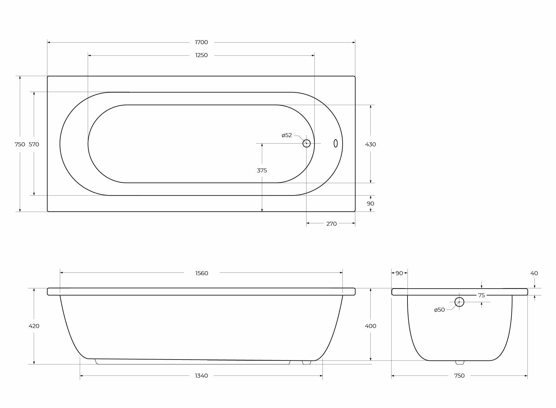 Ванна акриловая CEZARES PIAVE-170-75-42-W37 информация: