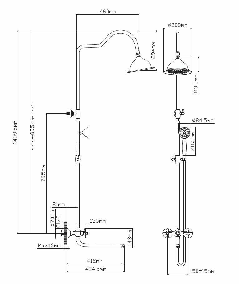 Душевая стойка Diadonna D80-335314 с изливом, верхним душем, лейкой, керамические кран-буксы, хром информация: