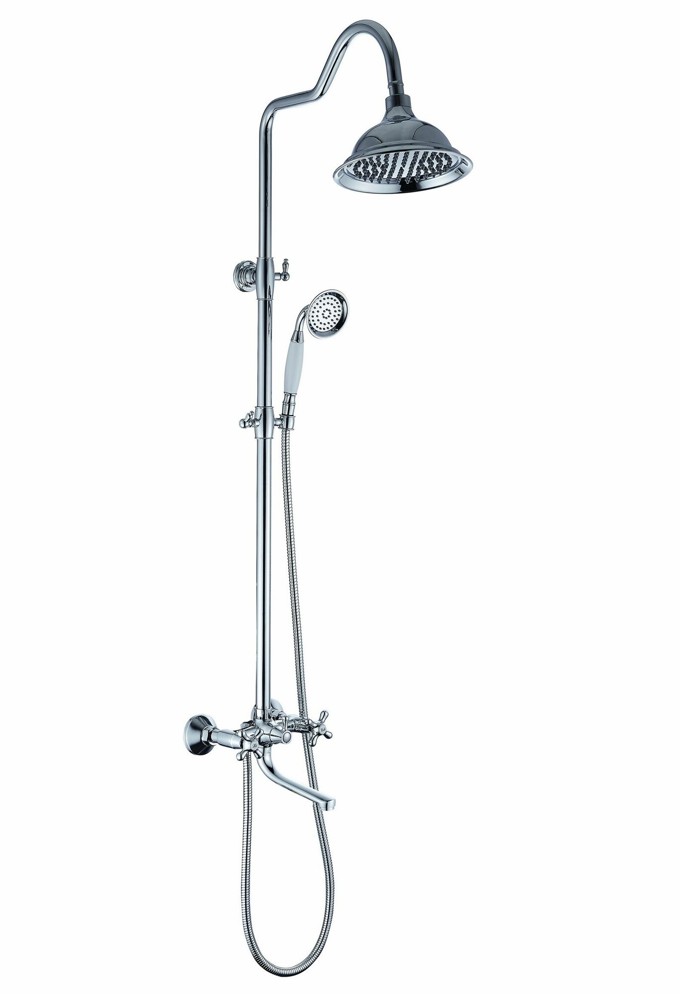 Душевая стойка Diadonna D80-335314 с изливом, верхним душем, лейкой, керамические кран-буксы, хром