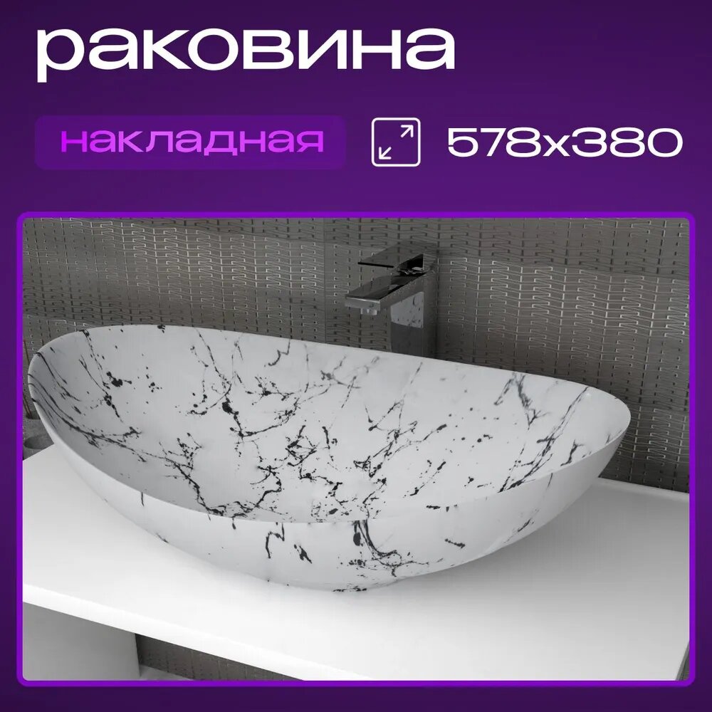 Умывальник накладной для установки на столешницу Marko Ореол 59, белый мрамор информация: