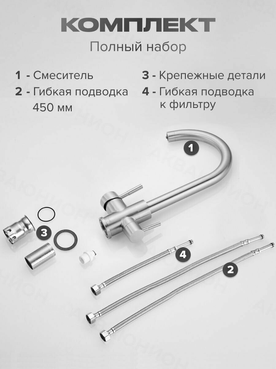 Смеситель для кухни с подключением фильтра воды Shevanik S168B сатиновый информация:
