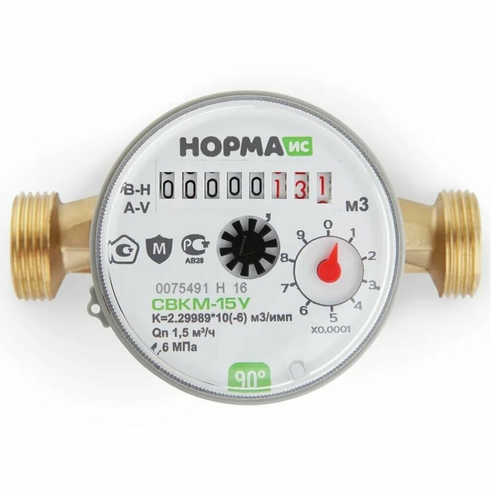 Водосчетчик норма СВКМ-15 У, с монтажным комплектом , антимагнитный информация: