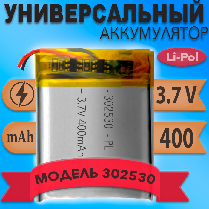 Аккумулятор (батарея) 302530 400mah 3,7v (30х25х3 мм) информация: