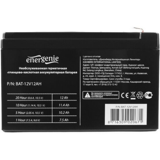Аккумулятор для ИБП Energenie BAT-12V12AH информация: