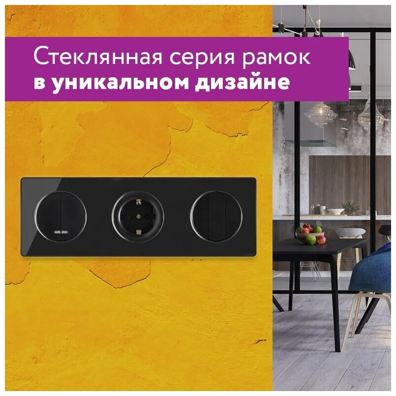 Рамка стеклянная OneKeyElectro Garda (для серии Florence) 3 поста, вертикальная (можно использовать горизонтально), цвет чёрный 2 162 ₽