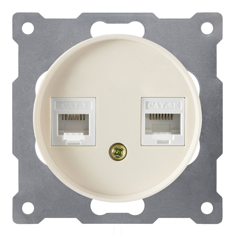 Розетка двойная телефон/компьютер OneKeyElectro RJ11/RJ45 5e, цвет бежевый информация: