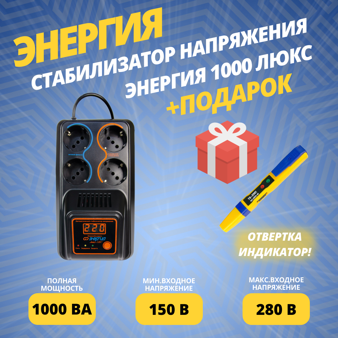 10 цен на Cтабилизатор напряжения Энергия 1000 Люкс + подарок
