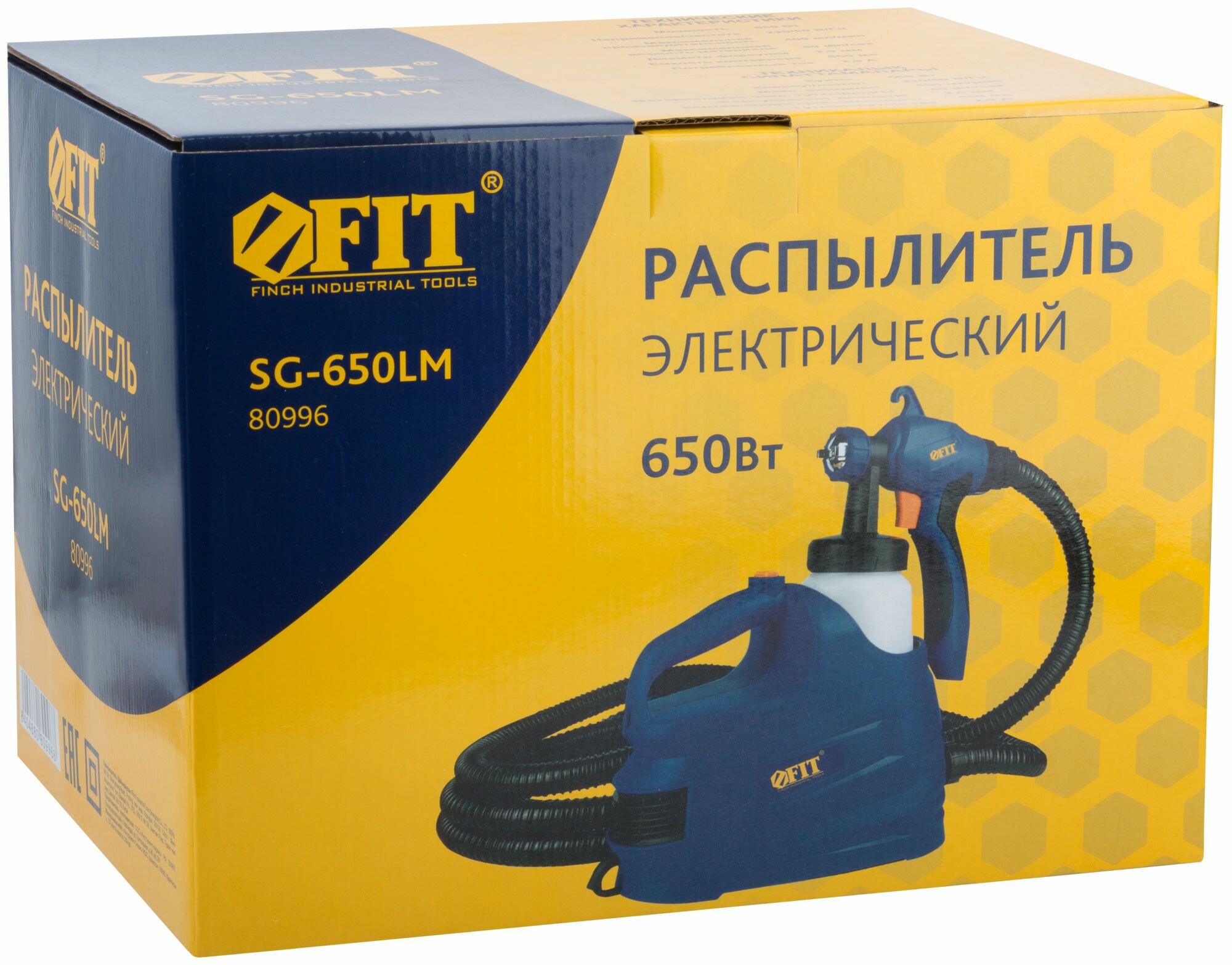 Распылитель электрический стационарный 650 Вт; 2,0 мм; 800 мл; 80 DIN/сек; 400 мл/мин; HVLP; коробка, FIT 80996 (1 шт.)