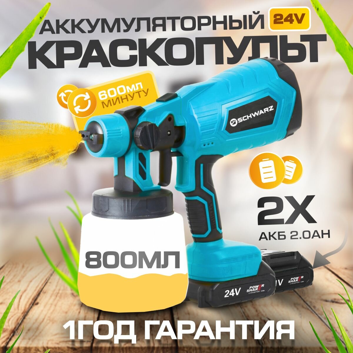 Краскопульт аккумуляторный Schwarz 24В информация: