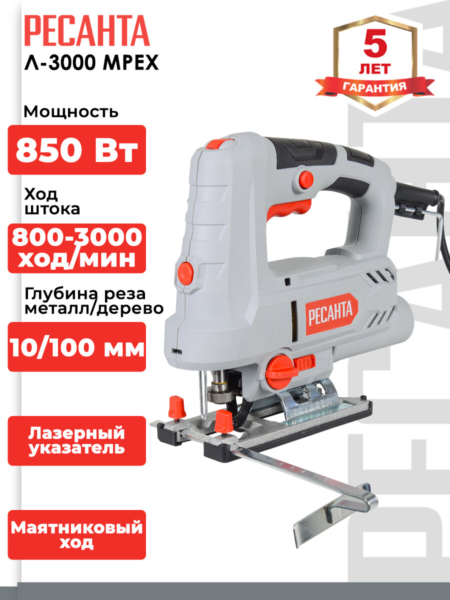 10 цен на Лобзик электрический Ресанта Л-3000 MPEX (850 Вт, 800-3000 ход/мин, маятниковый ход, лазерный указатель)