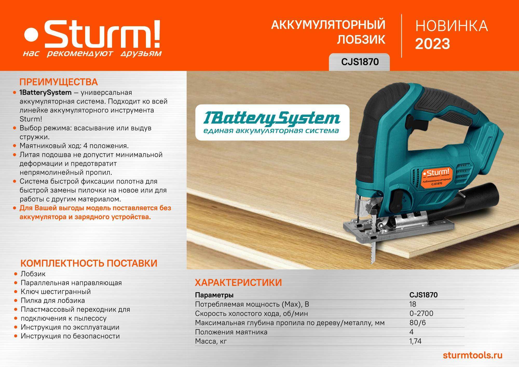 Аккумуляторный лобзик Sturm CJS1870 информация:
