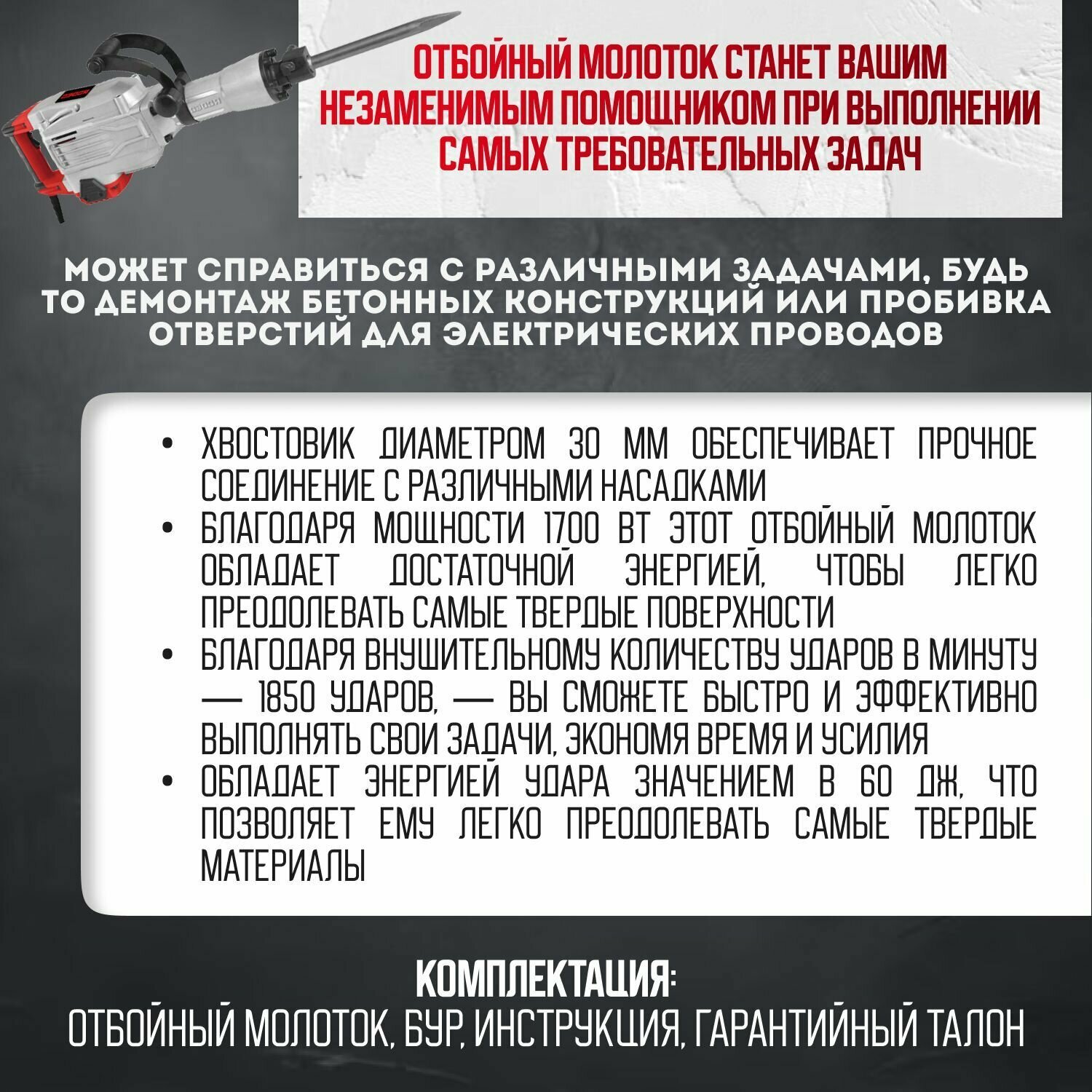 Отбойный молоток RODEO DH1700, 1700 Вт, 1850 уд./мин, 60 Дж информация: