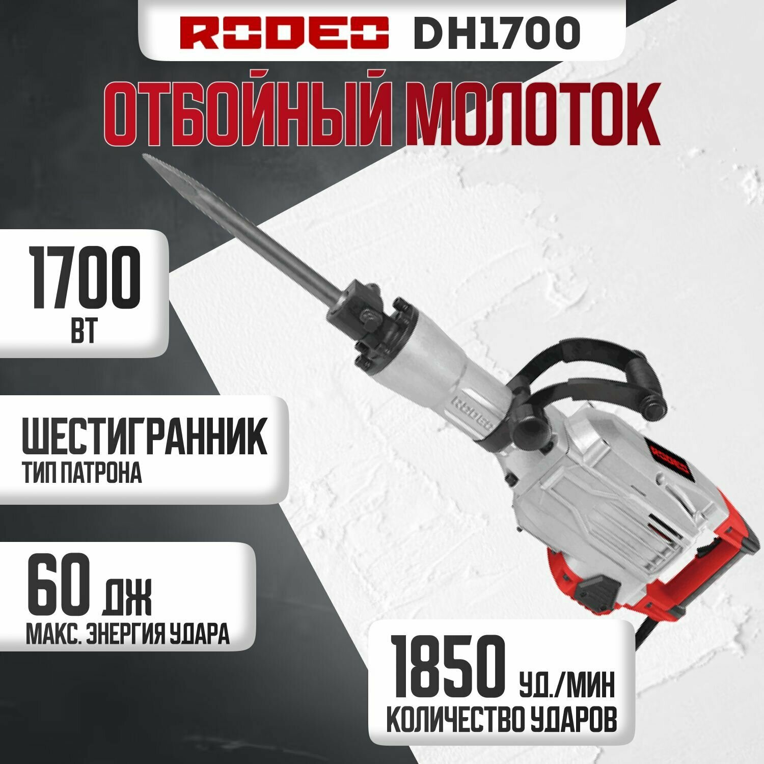 10 цен на Отбойный молоток RODEO DH1700, 1700 Вт, 1850 уд./мин, 60 Дж