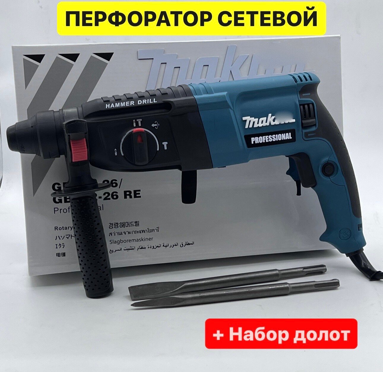 Перфоратор сетевой электрический 2-26, 1050 Вт, Коробке +набор долот 2.8 Дж, 1300 об/мин, 5500 уд/мин, , ударная дрель, SDS Plus информация: